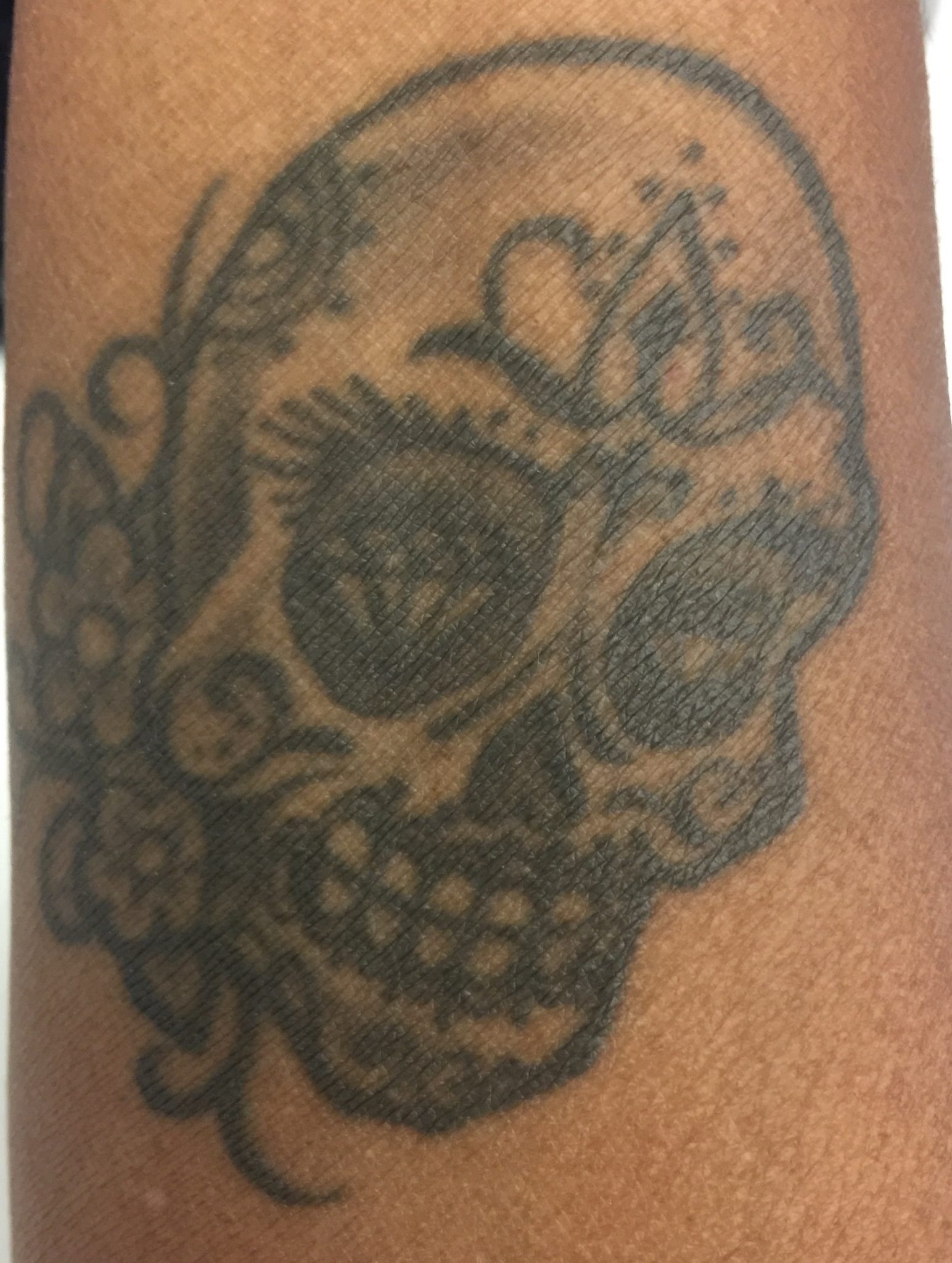 None the less, Pauline continued to do her research and finally got the first of three tattoos done. Her choice of designs are somewhat typical of women of colour; Hearts, Skulls and Tribal Markings.